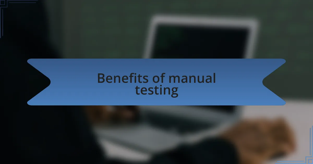 When it comes to manual testing, one of the most significant benefits lies in its adaptability. I often find that the firsthand experience of a tester can catch subtleties that automated scripts might overlook. For instance, during a recent project, I noticed a confusing user interface element that our automated tests simply skimmed over. It was that human intuition and perspective that ultimately led to a more cohesive user experience.