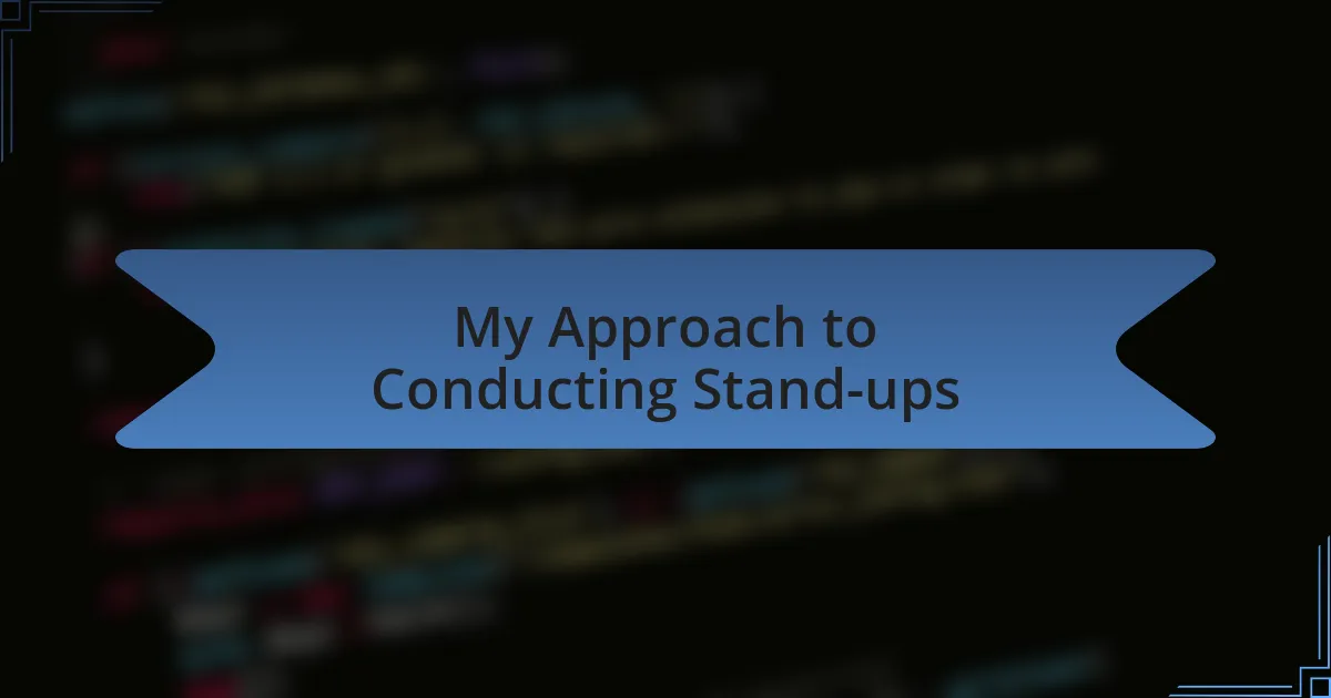 My approach to conducting stand-ups revolves around creating an inclusive atmosphere where everyone feels valued and encouraged to share. I’ve found that starting with a quick round of personal check-ins not only breaks the ice but also strengthens team bonds. I’ll never forget a time when we shared one positive thing that happened over the past week; it not only lightened the mood but also allowed us to celebrate each other’s successes, reinforcing a supportive environment.