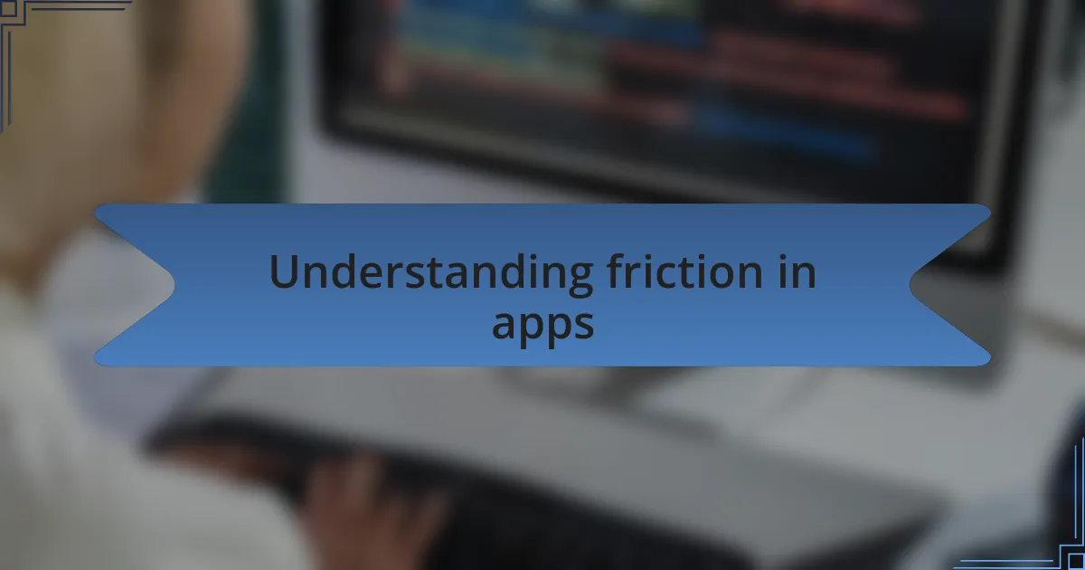 Friction in apps refers to any aspect that hinders or complicates a user’s experience. From my own experience, I’ve noticed that something as simple as slow loading times can quickly lead to frustration. Have you ever waited for a page to load, only to abandon the app entirely? Friction like this can result in lost users and diminished engagement.